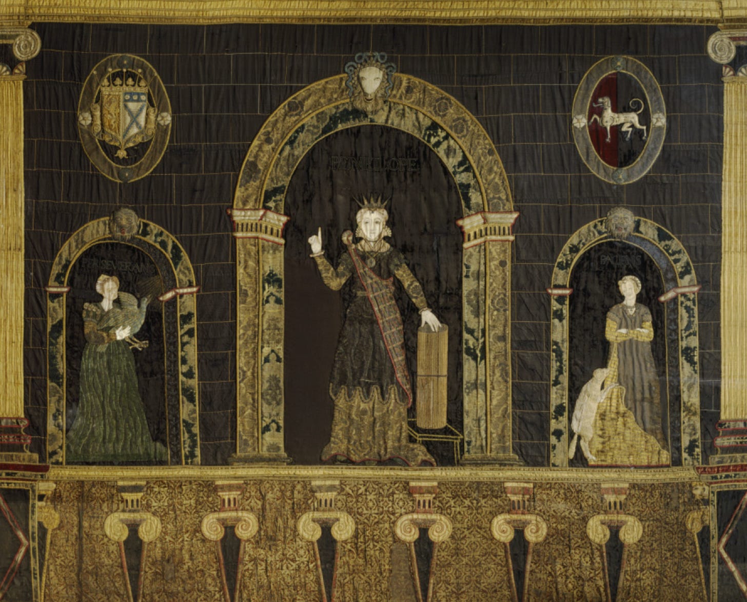 In the sixteenth century, Bess of Hardwick had her embroiderers, employees of her noble household, create a series of wall tapestries for her. These six tapestries depicted noblewomen with personifications of their virtues alongside.