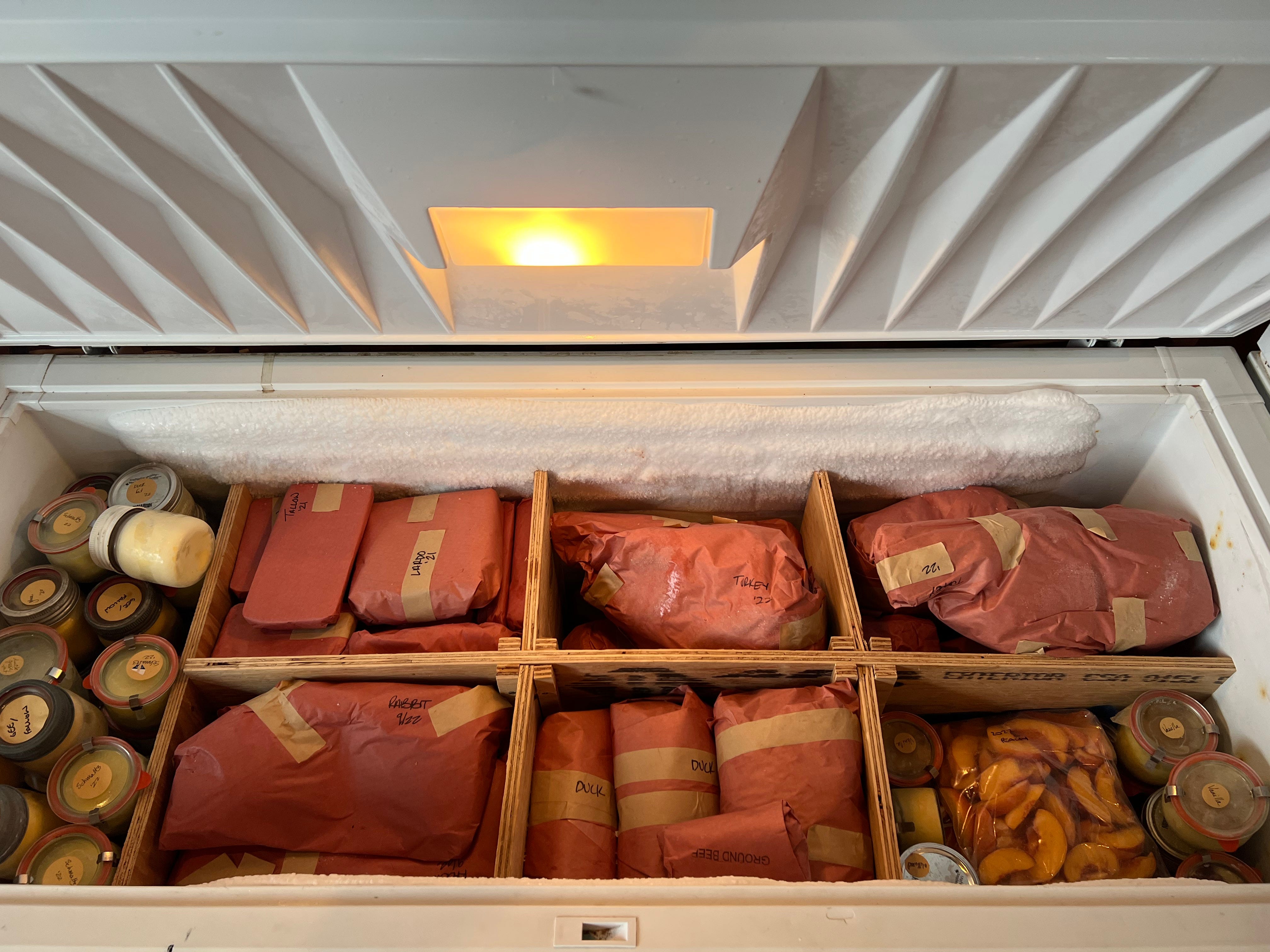 The fruits and meats and jars and freezers of so much labor! What beautiful sights! All to nourish your bodies in the coming year-